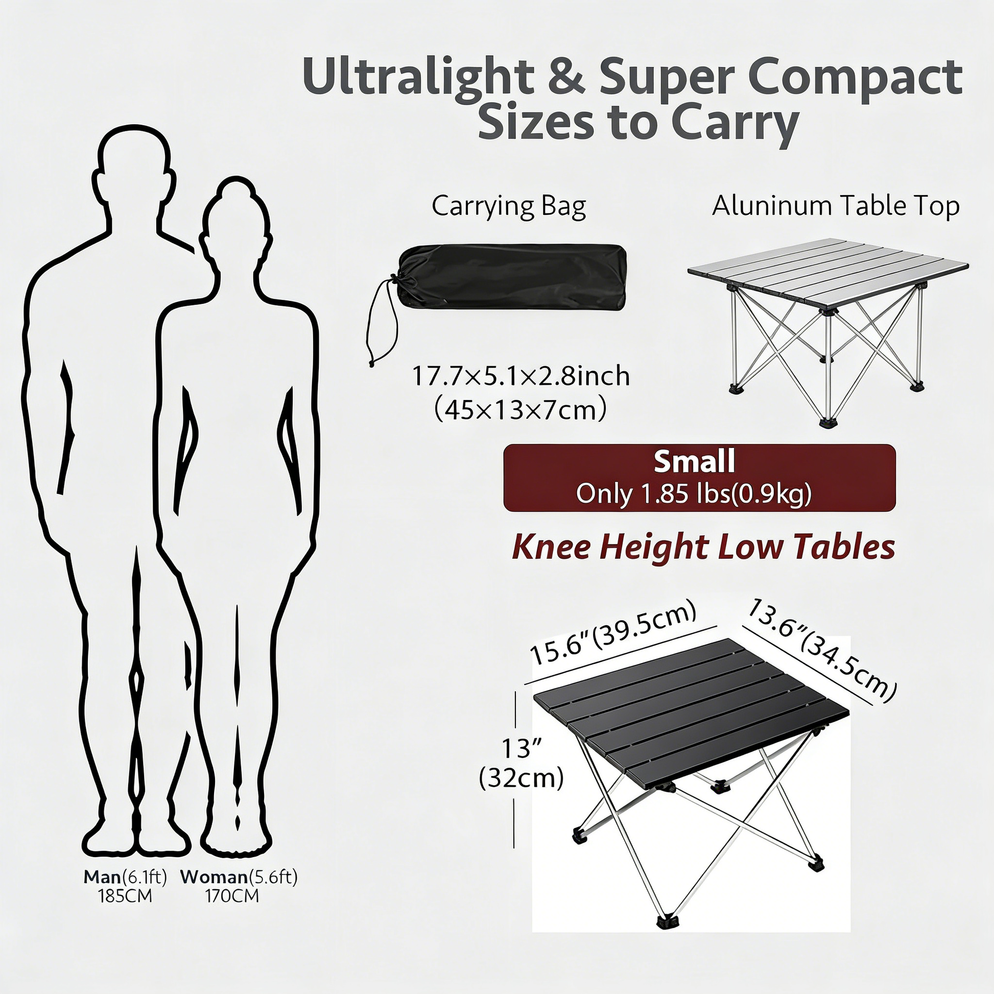 Made of lightweight aluminum, ultra-lightweight and foldable into a small size, easy to carry and store with a storage bag.