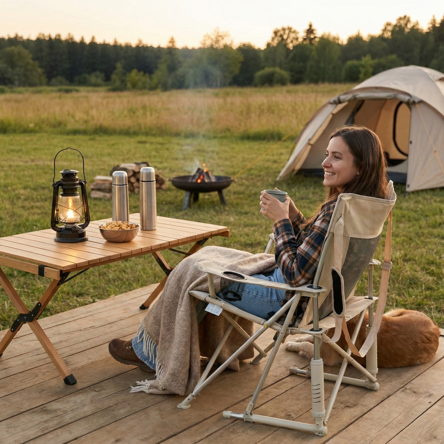 Portable Folding Rocking Camping Chair for Outdoor Patio Lawn