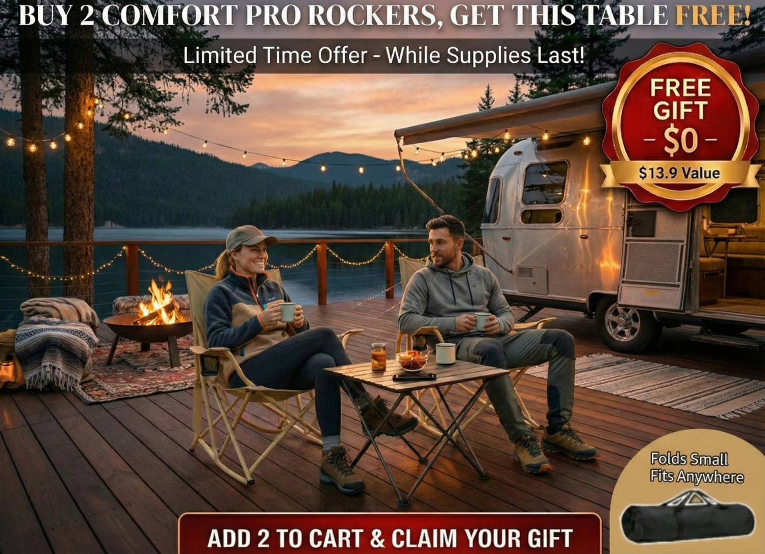 Score the ultimate outdoor setup at an unbeatable price. Buy 2Comfort Pro Rockers and get a FREE Foldable Side Table-whilesupplies last!