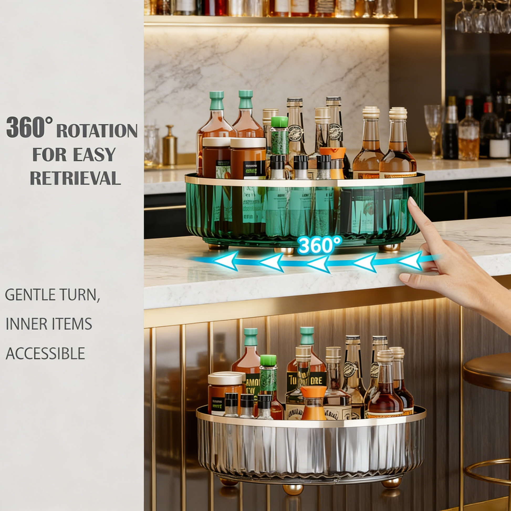 Features silent and smooth 360-degree rotation, allowing easy access to all items with a gentle spin.